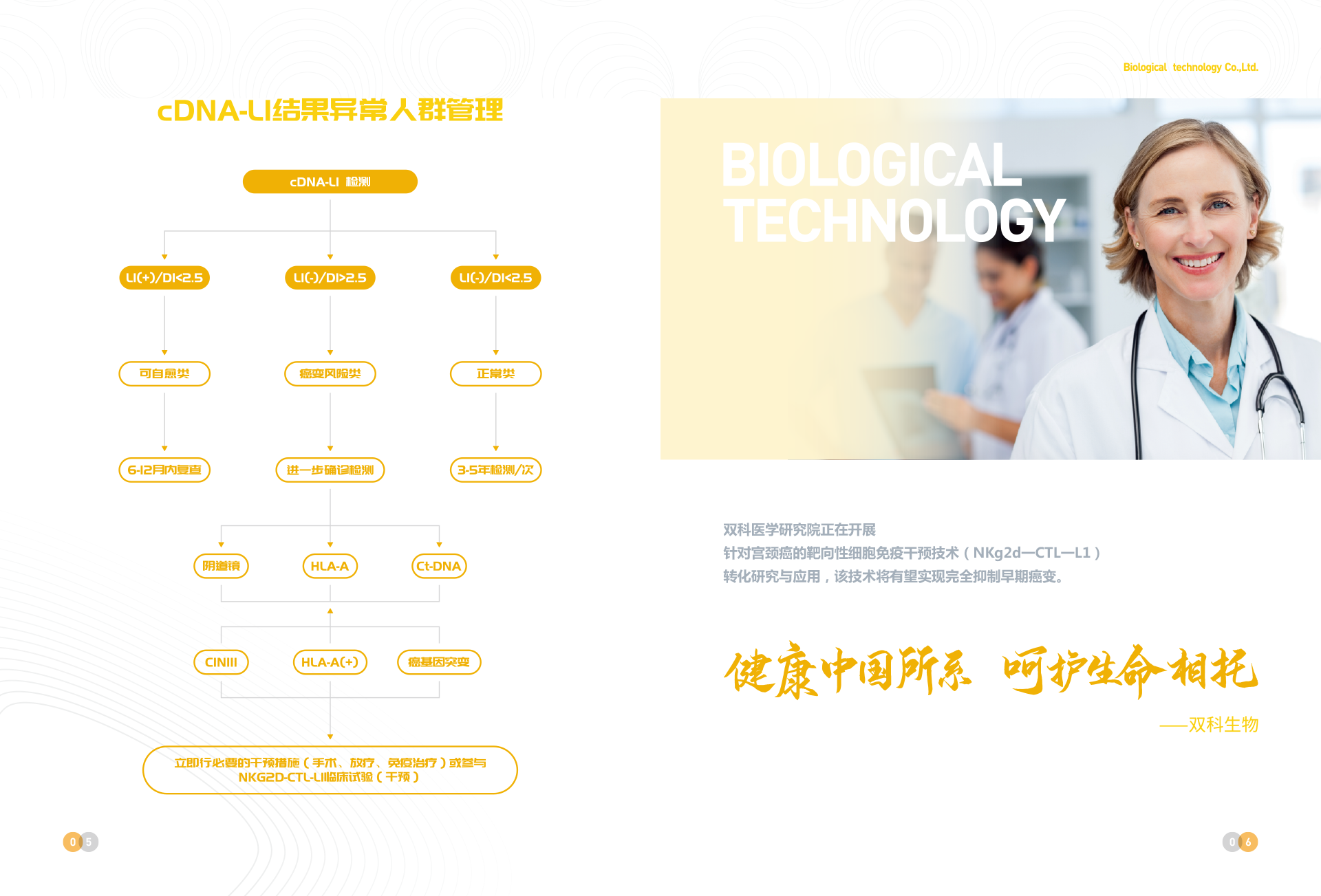 深圳市雙科生物科技有限公司創(chuàng)立于2012年12月12日,是按照國家“十二五”、“十三五”科技創(chuàng)新規(guī)劃、《中國防治慢性病中長期規(guī)劃(2017-2025年)》與《“健康中國2030”規(guī)劃綱要》等政策要求,以“健康中國所系,呵護(hù)生命相托”為公司使命,在“十二五”及“十三五”期間公司先后完成技術(shù)體系建模與試運(yùn)行、服務(wù)體系構(gòu)建與運(yùn)行、腫瘤綜合防控體系建立與實(shí)施,在高新生物技術(shù)領(lǐng)域,形成了具有完全自主創(chuàng)新與獨(dú)立知識(shí)產(chǎn)權(quán)的常見腫瘤液態(tài)活檢技術(shù)、體細(xì)胞技術(shù)、醫(yī)學(xué)AI技術(shù)、宮頸癌預(yù)警cDNA-L1技術(shù)、腦卒中早期預(yù)警MTHFR/MTRR技術(shù) 、 N-MDT技術(shù)、“防-控`-保”技術(shù)等和服務(wù)體系。